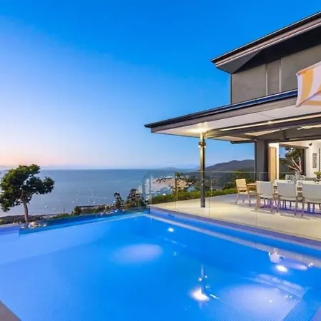 Situada a tan solo 1 km de Whitsunday Saturday Markets, la 'Whitsunday Blue' Luxury Home With Ocean Views Airlie Beach invita a los huéspedes a relajarse en un patio.